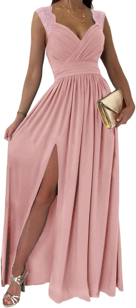 Product description Dokotooo Summer Wedding Guest Maxi Dress Dokotoo V-Neck Lace Empire Waist Formal Dress