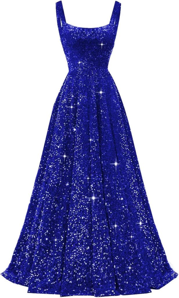 Product description Spaghetti Straps Sequin Prom Dresses 2025 Long Sparkly A-Line Gowns with Pockets The