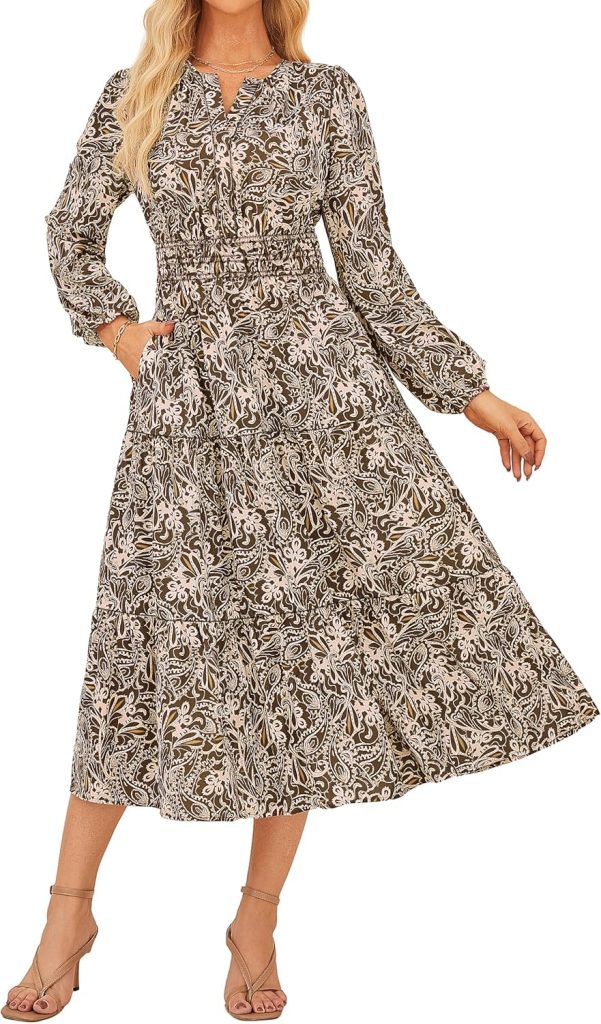 Product description GRACE KARIN Womens Fall Dresses Long Sleeve Floral V Neck Flowy Maxi Dress