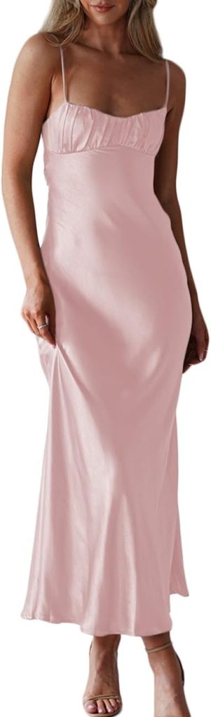 Product description Summer Satin Spaghetti Strap Midi Dresses for Women Elegant Party Dress The video