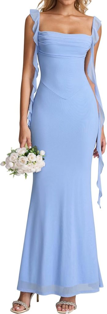 Product description Summer Wedding Guest Maxi Bodycon Dresses for Women Ruffle Formal Cocktail Party Dress