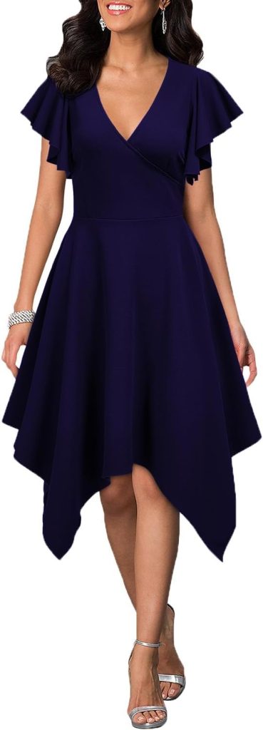 Product description Women’s Deep V Neck Formal Dress Hem Asymmetrical A Line Party Cocktail Dress