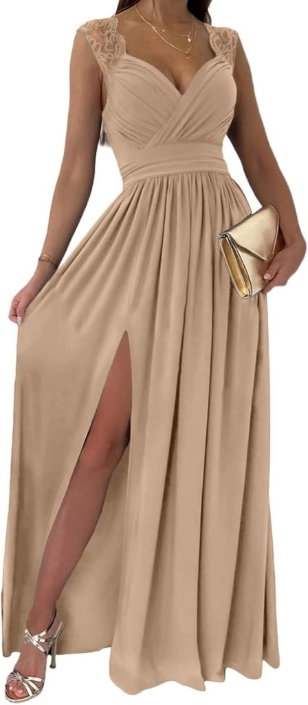 Product description Dokotooo Summer Wedding Guest Maxi Dress Dokotoo V-Neck Lace Empire Waist Formal Dress