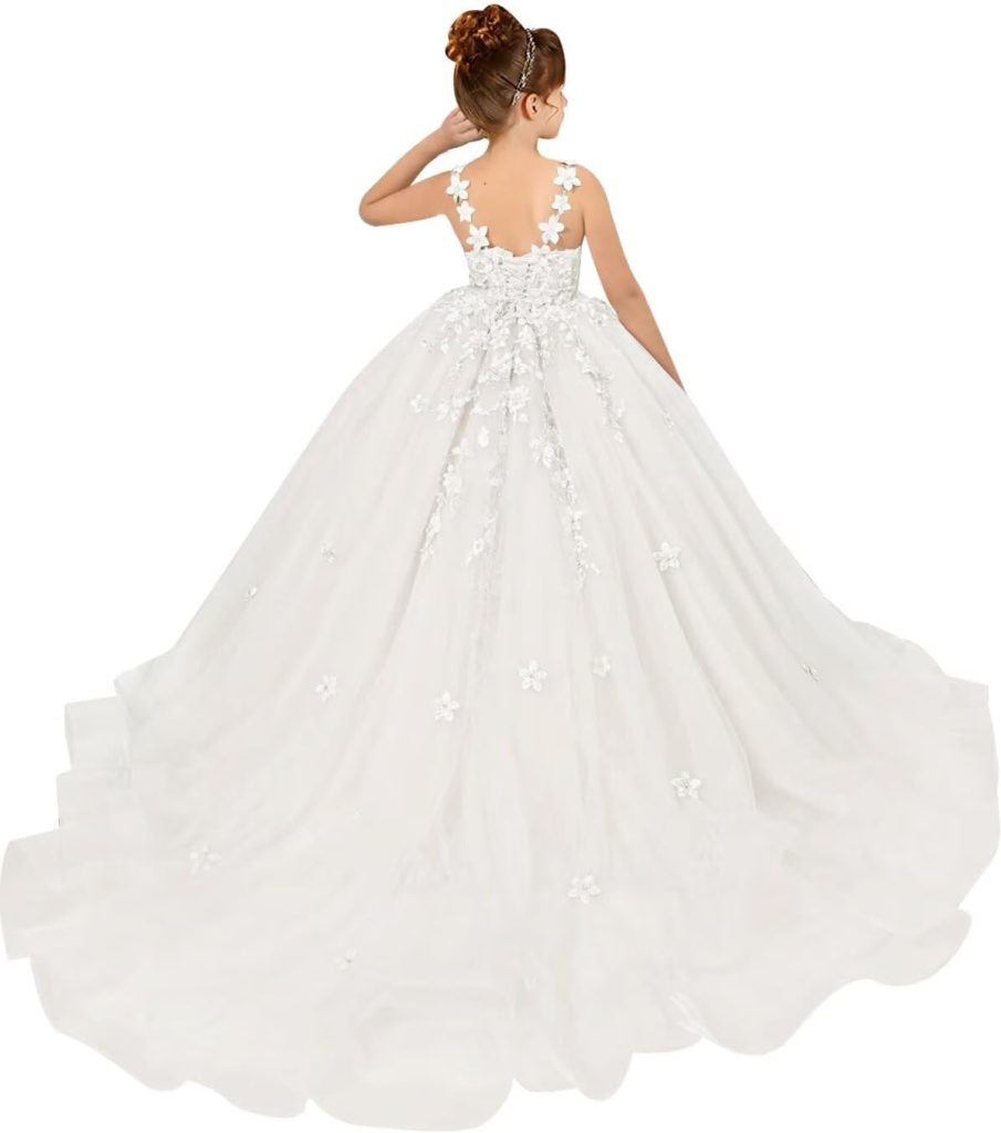 Product description Tulle Flower Girl Dresses for Wedding Floral Appliques Princess Pageant Dress The video