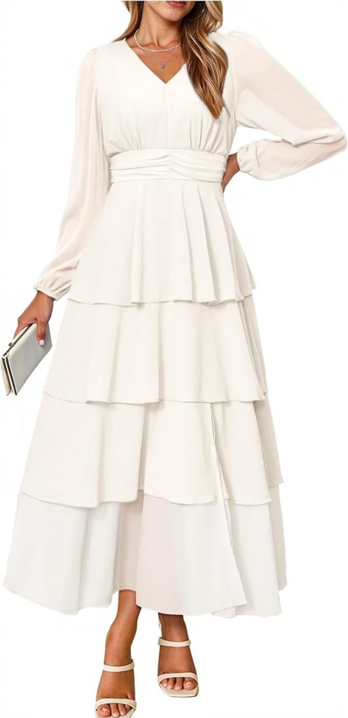 BerryGo Womens Flowy Maxi Dress Chiffon Long Sleeve Slit V Neck Casual Ruffle Tiered Boho Fall Wedding Guest Long Dress